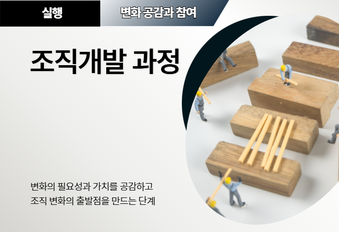 조직 구성원이 변화의 필요성과 가치를 공감하고, 내부 실행 역량을 체계적으로 확보하여 조직 변화의 출발점을 만드는 단계입니다.