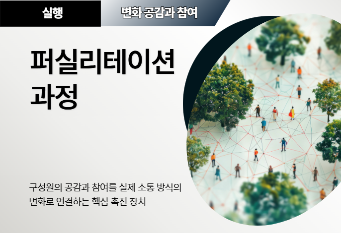 변화 실행 단계에서 구성원의 공감과 참여를 실제 소통 방식의 변화로 연결하는 핵심 촉진 장치입니다.