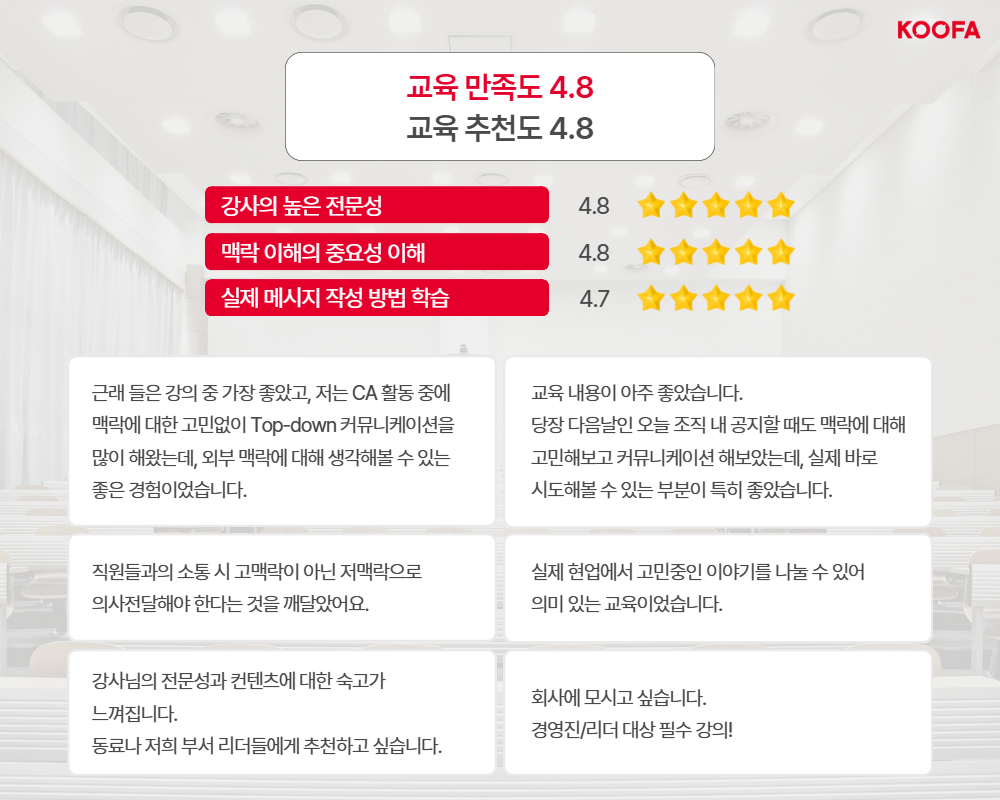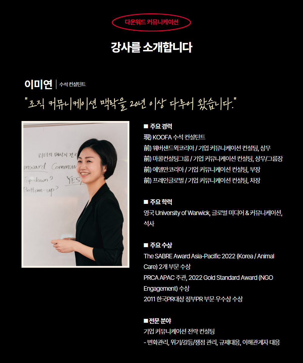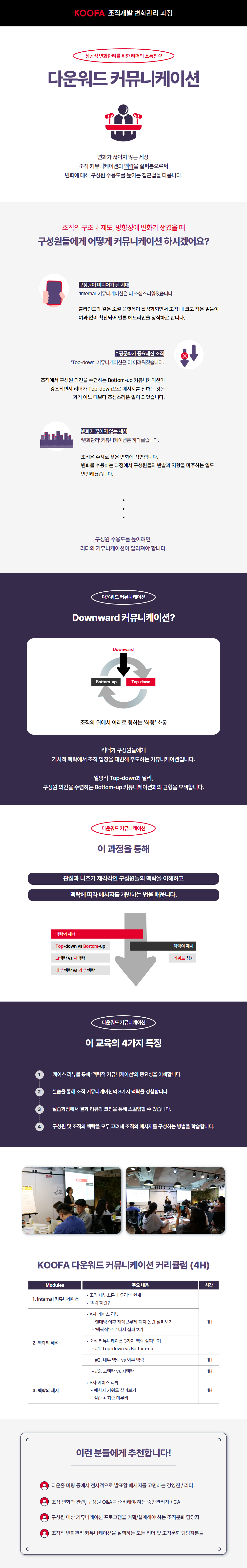 이 페이지는 KOOFA Global OD 정규 과정 중 외부 수강생도 함께 참여할 수 있는 '공개 회차'를 안내하고 신청받는 공간입니다. 자세한 공개 회차의 정보는 아래 이미지를 확인해주세요.