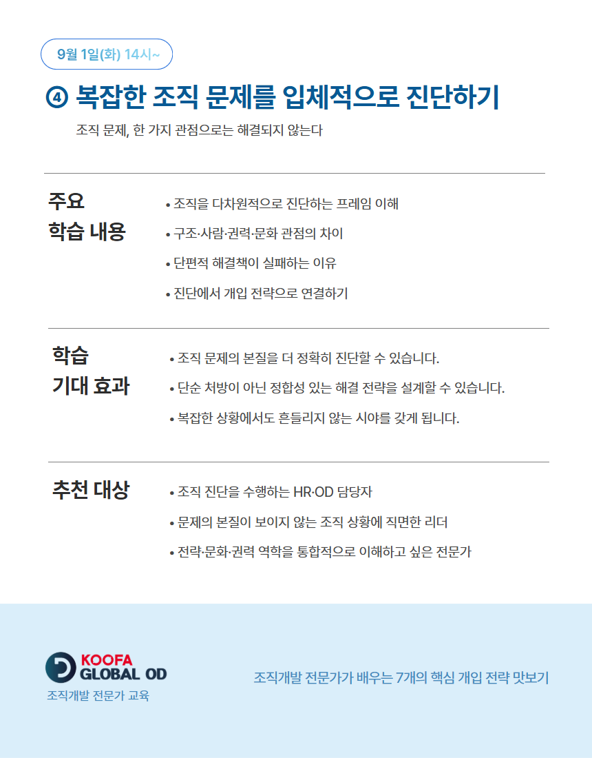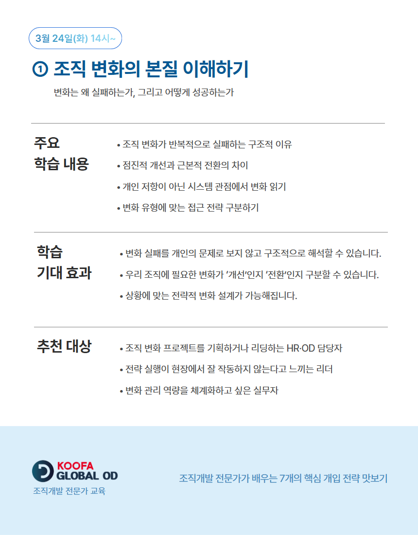 조직개발 전문가 교육 : Global OD 공개 회차 수강 신청